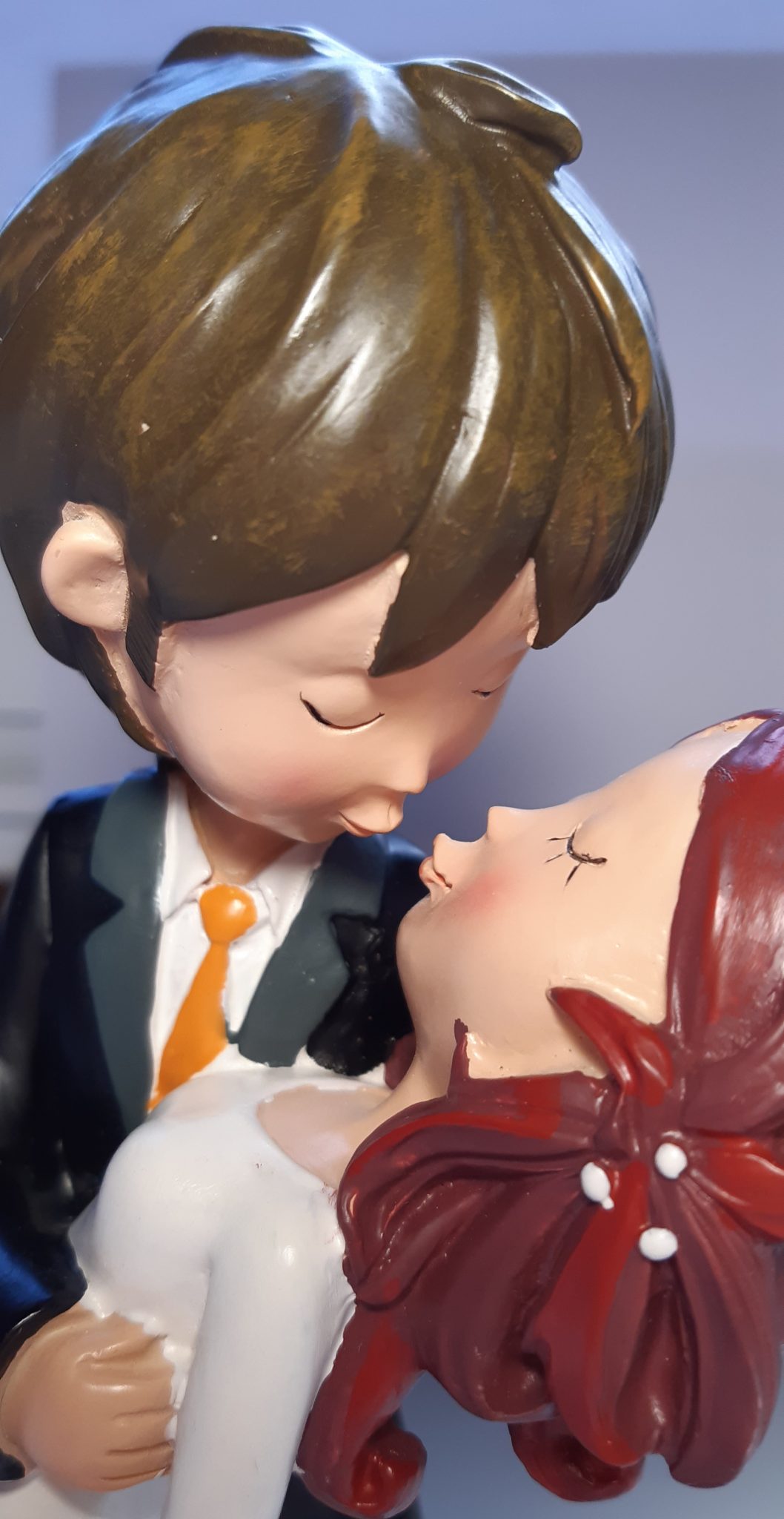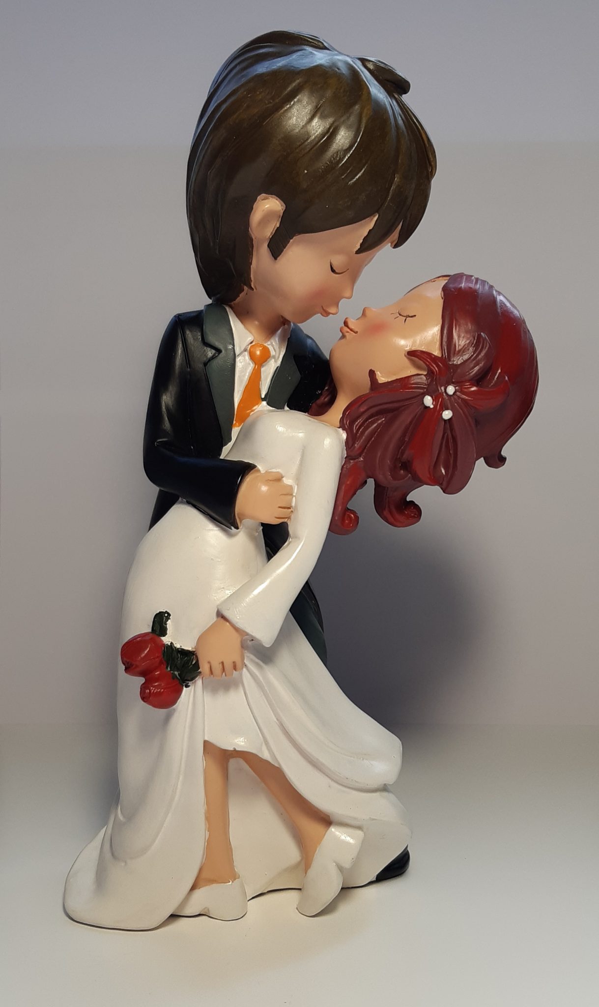 Vendo figura de una pareja de novios representando un romántico beso. Ideal para adornar tarta de boda o para regalar como detalle en ese día tan especial.
