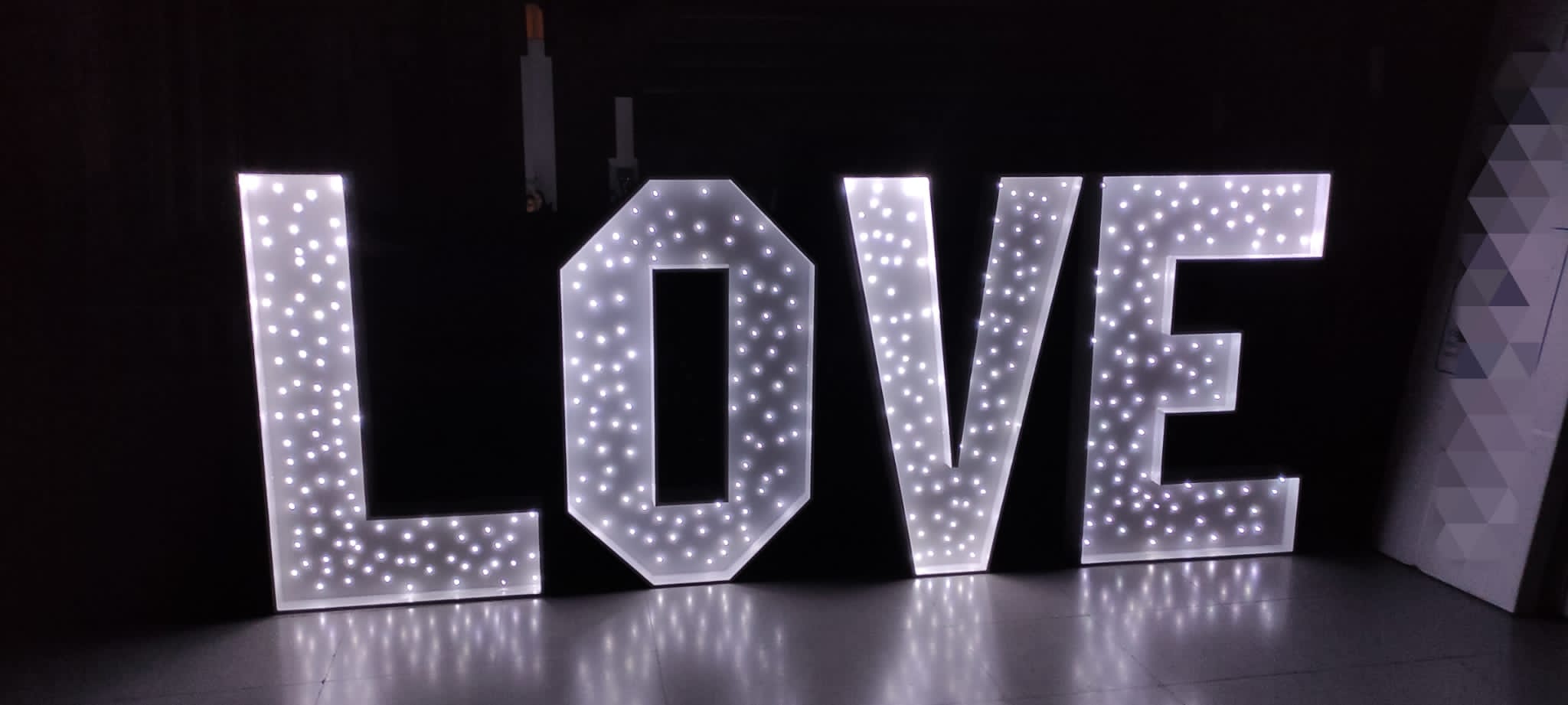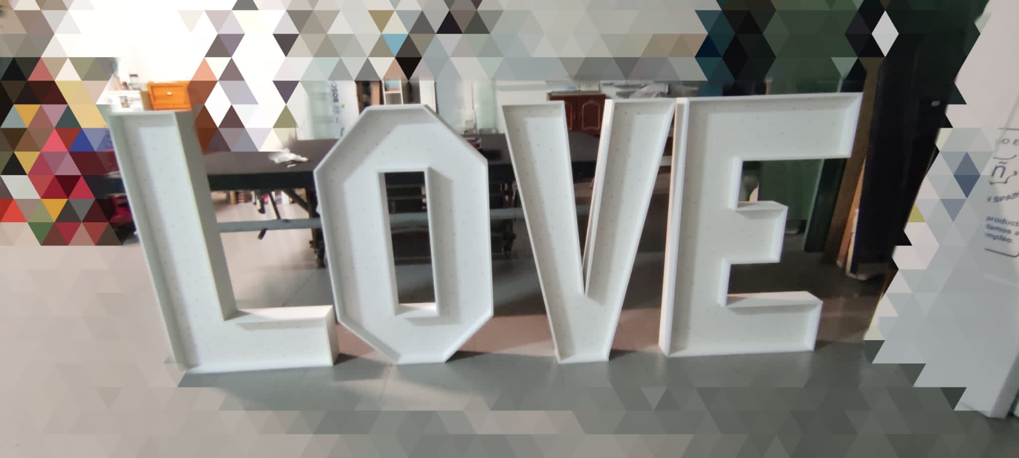 Letras XXL LOVE con iluminación led blanca, funcionan con pilas no necesitan conexión. Miden 120cm de alto. Perfectas para bodas y eventos