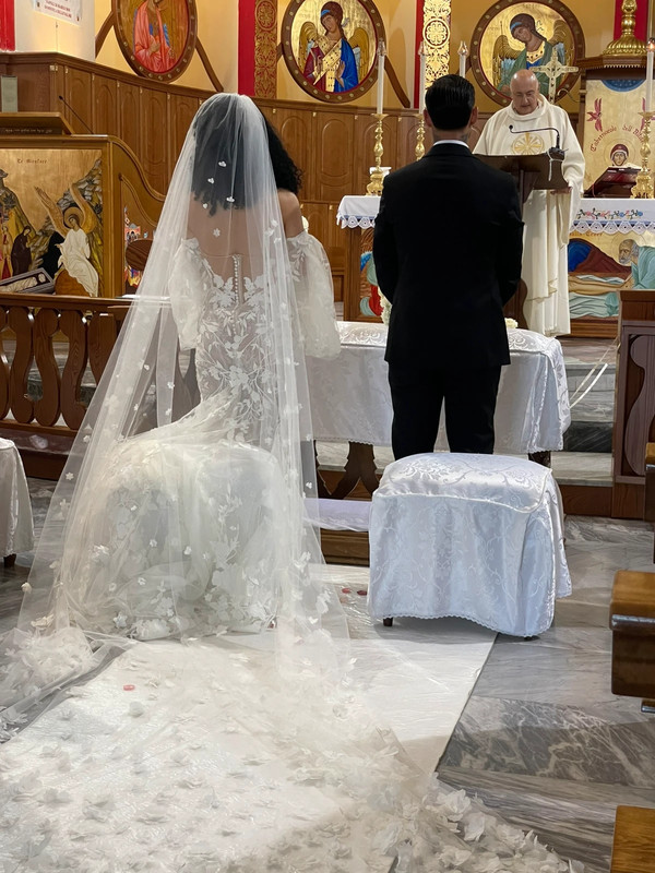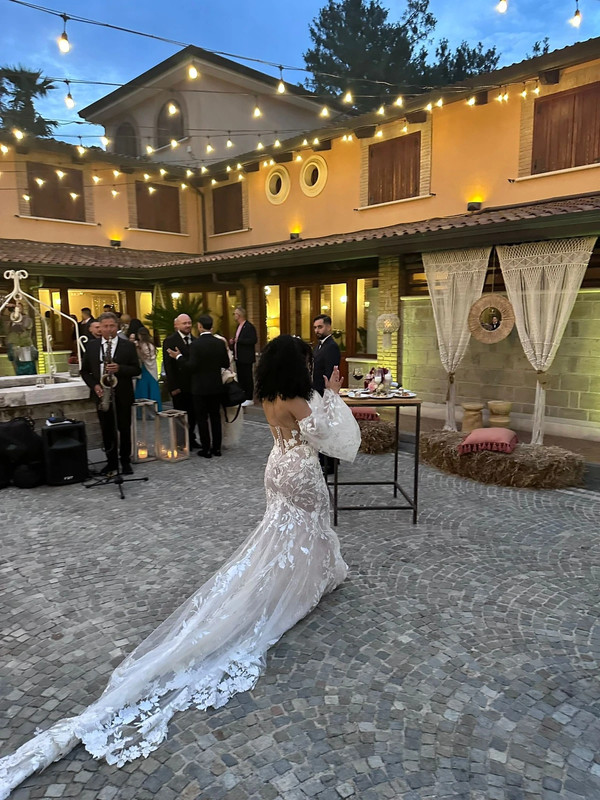Usado durante unas horas para una boda de noche. Talla S, 40, velo incluido