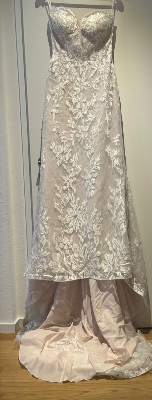 Elegante vestido de novia de marca reconocida, sin terminar de confeccionar, para ajustarlo a tu talla. Precio negociable.